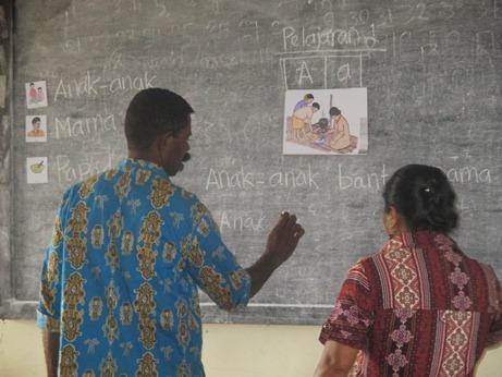 Oleh sebab itu melalui program pendidikan bahasa Ibu yang disponsori oleh pemerintah Finland melalui Wycliffe Finland dan melalui YBI kami melalukan berbagai kegiatan pada ke 3 kampung ini yang berpusat di kampung Douvu. Pelatihan pertama dilaksanakan pada bulan Januari 2015 pada tanggal 29-30, peserta yang mengikuti pelatihan ini berjumlah 7 orang yang tergabung dari 3 kampung. Materi yang diberikan pada pelatihan ini adalah Buku Berita Baru 1 (BB1). Koordinator yang bertanggung jawab pada suku ini adalah Bapa Marinus Ayata, ia juga menjadi kepala sekolah di Sekolah Dasar Douvu.
